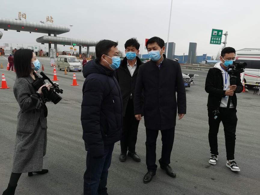 王建發董事長一行首先來到滎陽市高速收費站,慰問了執勤在高速收費站聯合執勤的干警同志們,并向他們捐贈了急需的防疫物資及生活物資??此麄儗γ恳惠v下站車輛每位人員進行詳細的詢問及檢查,王建發先生表示了崇高的敬意與衷心的感謝,滎陽市應急管理局副局長安良表示: “特別感謝綠建公司的雪中送炭,防疫物資緊缺使一線同志們面臨巨大的挑戰,有了這批物資,收費站的全體同志們必將以更加飽滿的精神和高昂的斗志,全力以赴投入到這場阻擊戰中,堅決守護廣大民眾健康”