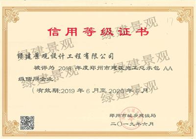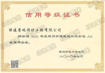 2019年度鄭州市建筑施工總承包AA級信用企業(yè)