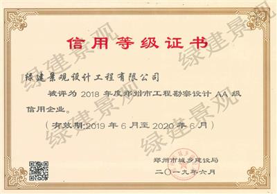 2019年度鄭州市勘察設計AA級信用企業(yè)