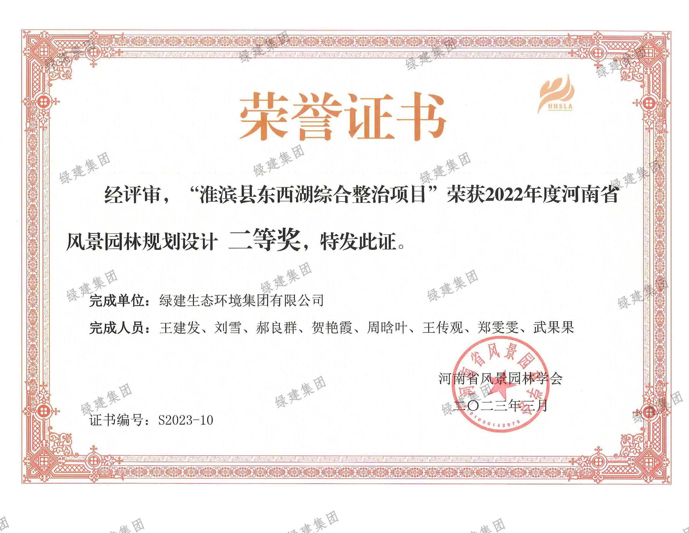 2022年度淮濱縣東西湖風景園林規劃設計二等獎