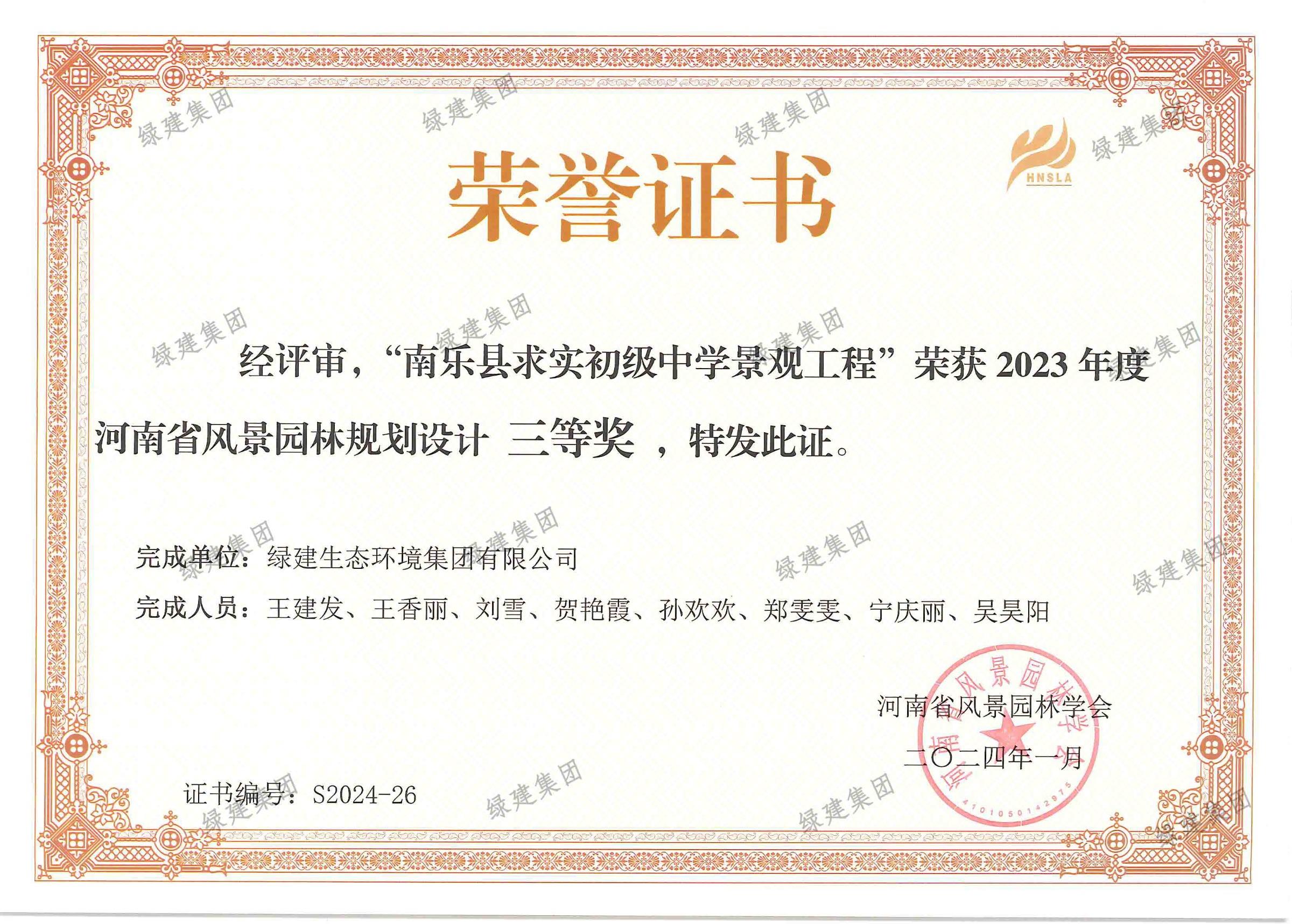 2024-2025年度河南省園林綠化協會AAAAA誠信企業