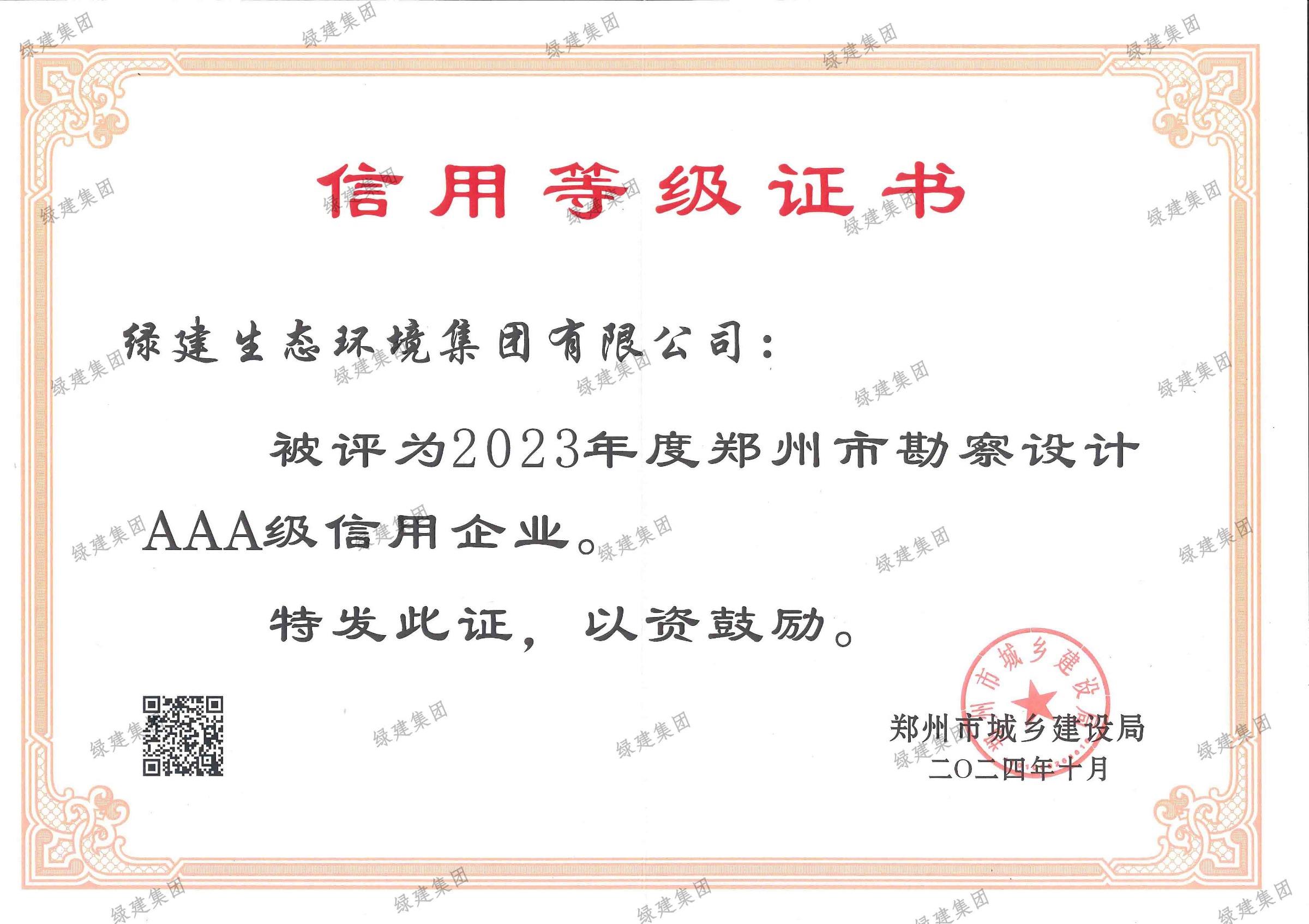 2023年度鄭州市建筑施工總承包AA級信用企業